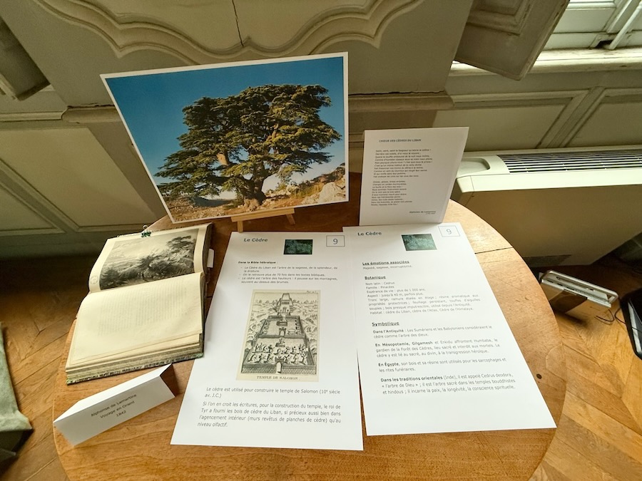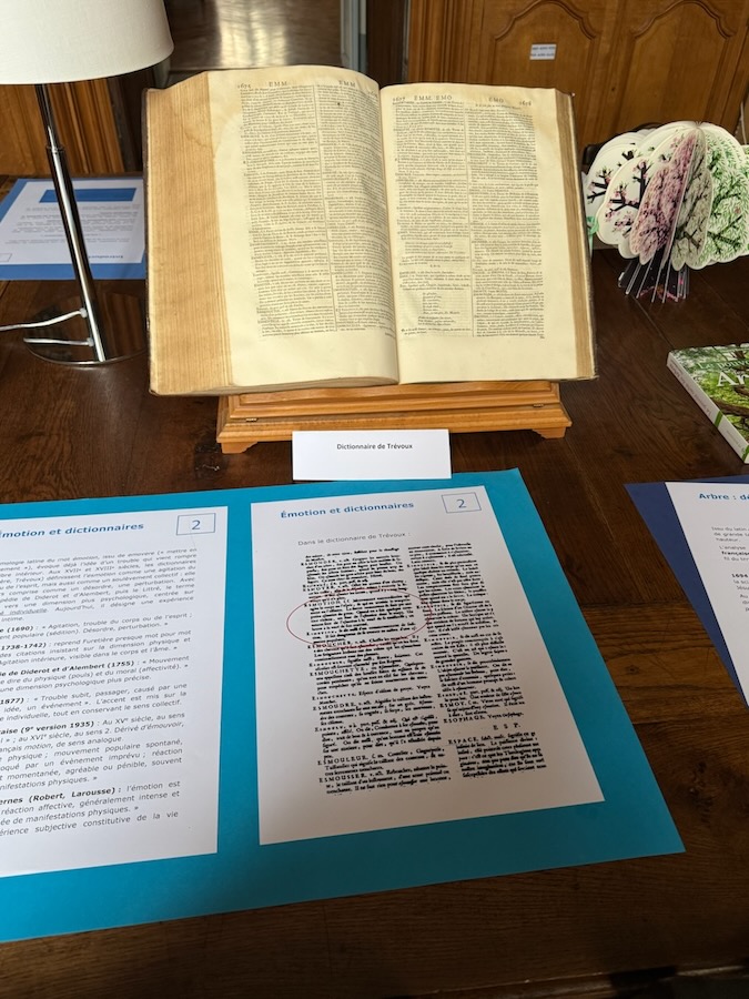 « Le parcours propose une réflexion autour des définitions des mots émotion et arbre et de leur évolution dans le temps, notamment dans l’édition 1743 du dictionnaire de Trévoux ; la découverte d’arbres emblématiques de notre région et d’arbres remarquables ; des poèmes et d’autres évocations artistiques. Cette exposition a été conçue par l’Académie dans le cadre de la manifestation Patrimoines écrits de l’Agence Livre et Lecture de Bourgogne-Franche-Comté. Elle vise à mettre en valeur notre patrimoine et à contribuer à la vie culturelle et intellectuelle de la cité. Les salons du rez-de-chaussée accueillent chacun un volet de l’exposition, permettant au public d’entrer dans ce lieu emblématique de Mâcon.