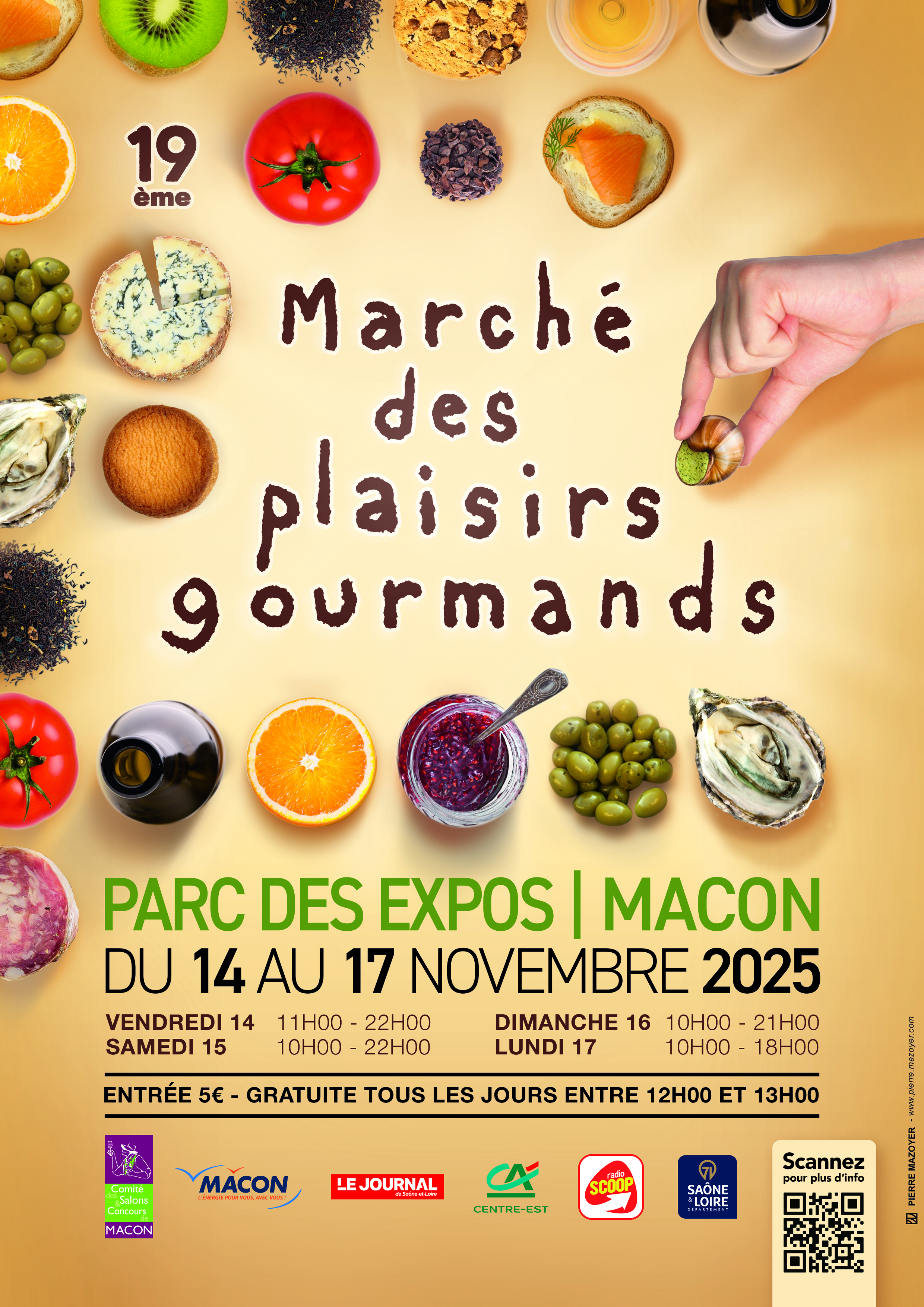 La 19ème édition du Marché des Plaisirs Gourmands se tiendra du vendredi 14 au lundi 17 novembre 2025 au Parc des expositions de Mâcon. Pendant 4 jours, Mâcon va vivre au rythme des saveurs de la gastronomie française.