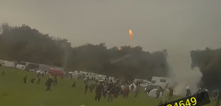 La progression des militaires dans la clairière en direction de la zone de sonorisation se fait, pendant une durée de 20 à 25 min, sous une pluie de projectiles (bouteilles en verre, pierres, morceaux de bois, cocktails Molotov, bombes agricoles, tirs de mortier).