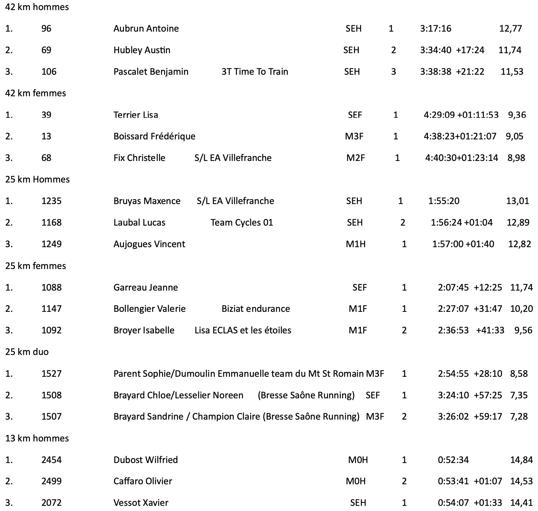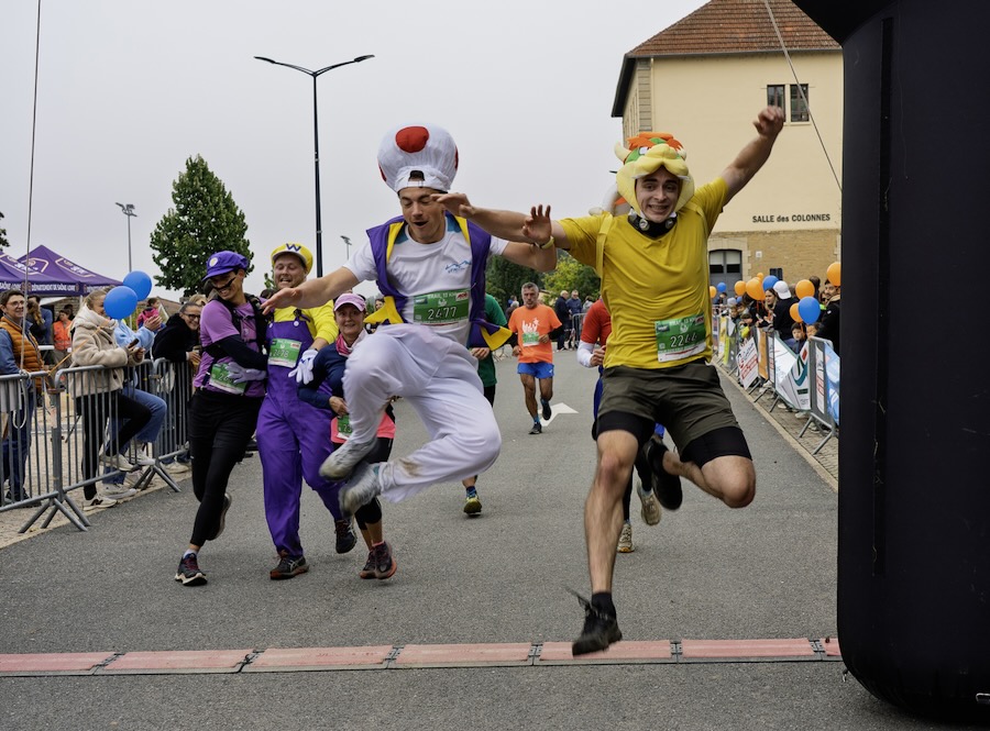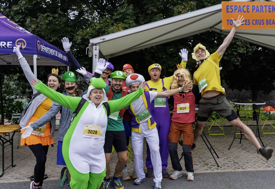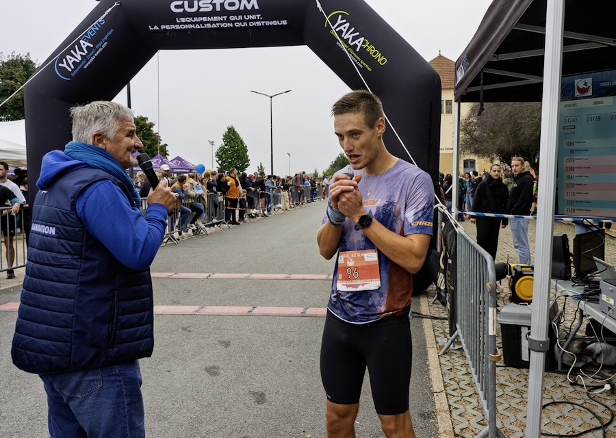 • À 8h30, c’est le départ de « Autour des Crus », parcours intermédiaire de 25 km, avec deux catégories en lice sur le même trajet, les coureurs solos et ceux qui courent en duo, ceux-ci doivent faire l’intégralité du parcours ensemble et franchir la ligne d’arrivée de même.