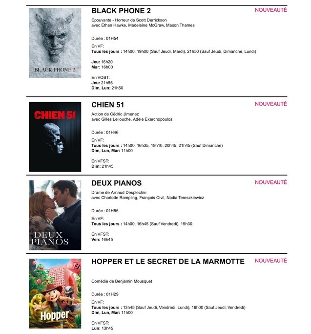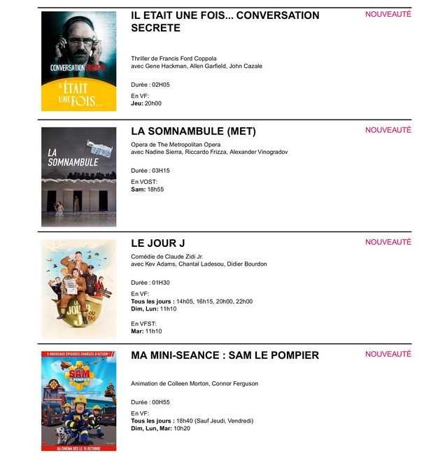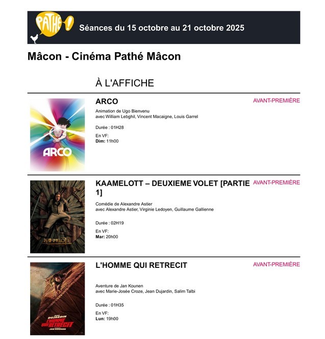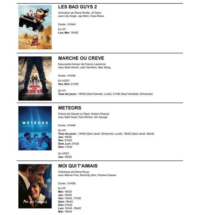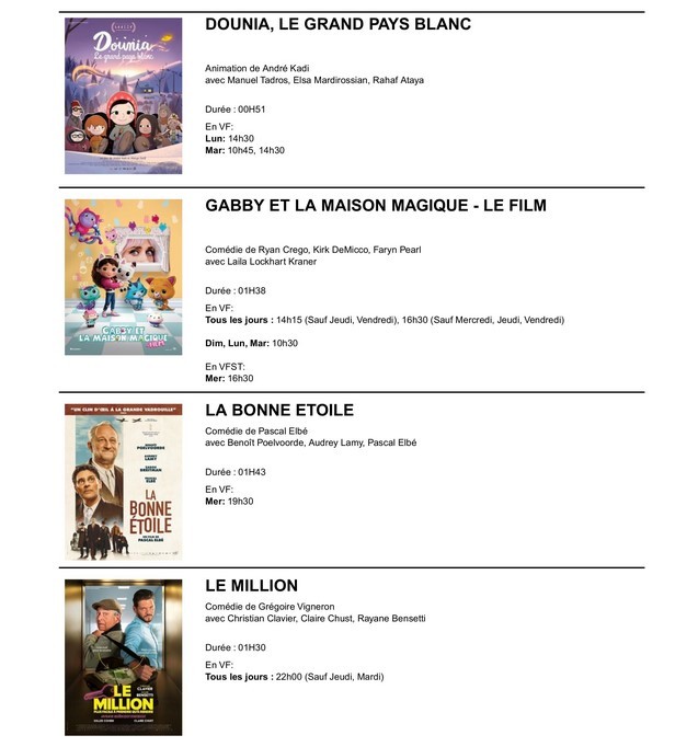Veuillez trouver ci-joint le programme du 15 octobre au 21 octobre 2025.