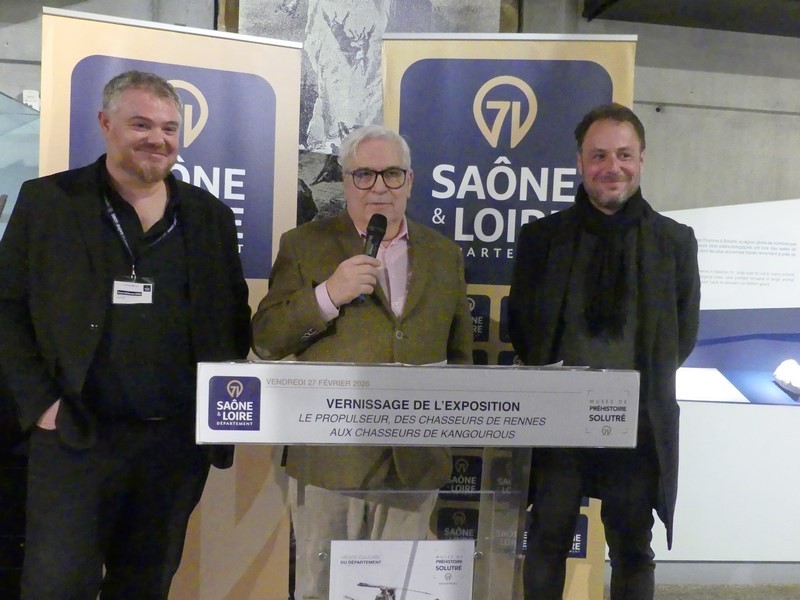 Le vernissage de l'exposition s'est déroulé ce vendredi soir au musée de préhistoire en présence d'Hervé Reynaud, vice-président du Département en charge de la culture et du patrimoine, du nouveau responsable du Grand site de Solutré Sylvain Françonnet, arrivé le 2 février et de Pierre-Guillaume Denis, responsable du musée de préhistoire.