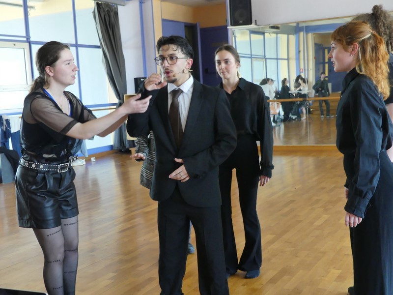 Les étudiant.es étaient en pleine répétition ce jeudi après-midi à la salle de danse du centre omnisports sous le regard bienveillant de Stéphanie Freyer (danse, chorégraphie), Mélanie Guth (comédienne, metteuse en scène) et Isabelle Gorsse (technique vocale, chant).