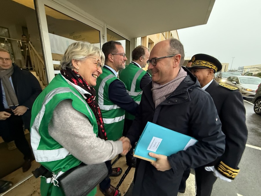 Aymeric Renaud, Président Schneider Electric France, Jean Patrick Courtois, maire de Mâcon et président de MBA, Éric Lagrange, directeur du site mâconnais, Dominique Dufour, préfet, et toute son équipe, ainsi que les parlementaires Benjamin Dirx, et Paulette Matray étaient toutes et tous dès 8h30 sur le site de Schneider Electric à Mâcon pour accueillir Sébastien Martin, qui entamait a Mâcon 'une journée industrielle stratégique pour le territoire départemental’.