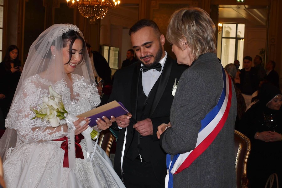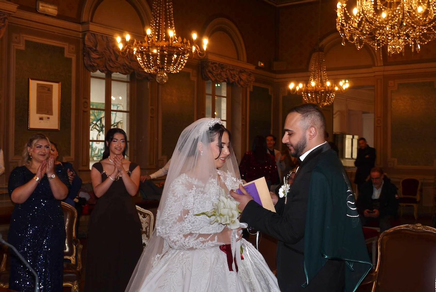 Umit, technicien chauffagiste né le 23 mai 1997 à La Tronche, en Isère, et Fatma, gestionnaire comptable née le 7 octobre 1995 à Mâcon, ont échangé leurs consentements en présence de leurs témoins Beyza Köse, Saliha Kara, Tugba Karaoglan et Saad Amar Menzer. C'est dans la tradition turque, où les alliances sont reliées par un ruban, coupé par la grand-mère de Fatma, que les deux jeunes mariés ont prononcé leur engagement. Le ruban, agrémenté de perles, ajoutait à la douceur de ce moment, retranscrit également dans les embrassades de félicitations qui ont suivi la cérémonie.