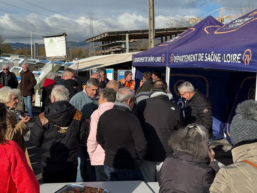 C’est sous le soleil mais dans la bise glaciale, que Hervé Carreau, le maire de La Chapelle, a invité les riverain.es, élu.es, et entreprises à parcourir physiquement la toute nouvelle Route des Burriers.