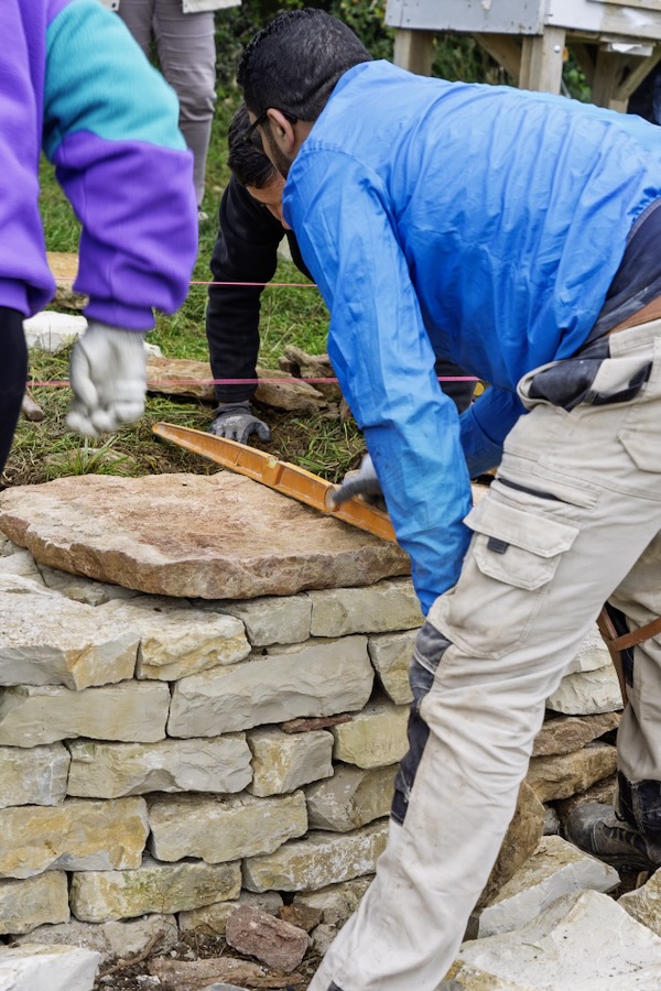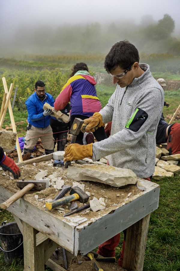 Nous devons parfois avoir recours à des prestataires extérieurs pour intervenir sur des chantiers plus conséquents pour lesquels les normes de sécurité nécessitent que ce soit fait par un professionnel apte à engager sa responsabilité. Par exemple, à Vergisson, nous avons eu recours à une équipe de professionnels de la pierre sèche, c’était un gros chantier qui a duré plus d’un mois, entre les études de sol et le travail proprement dit. »