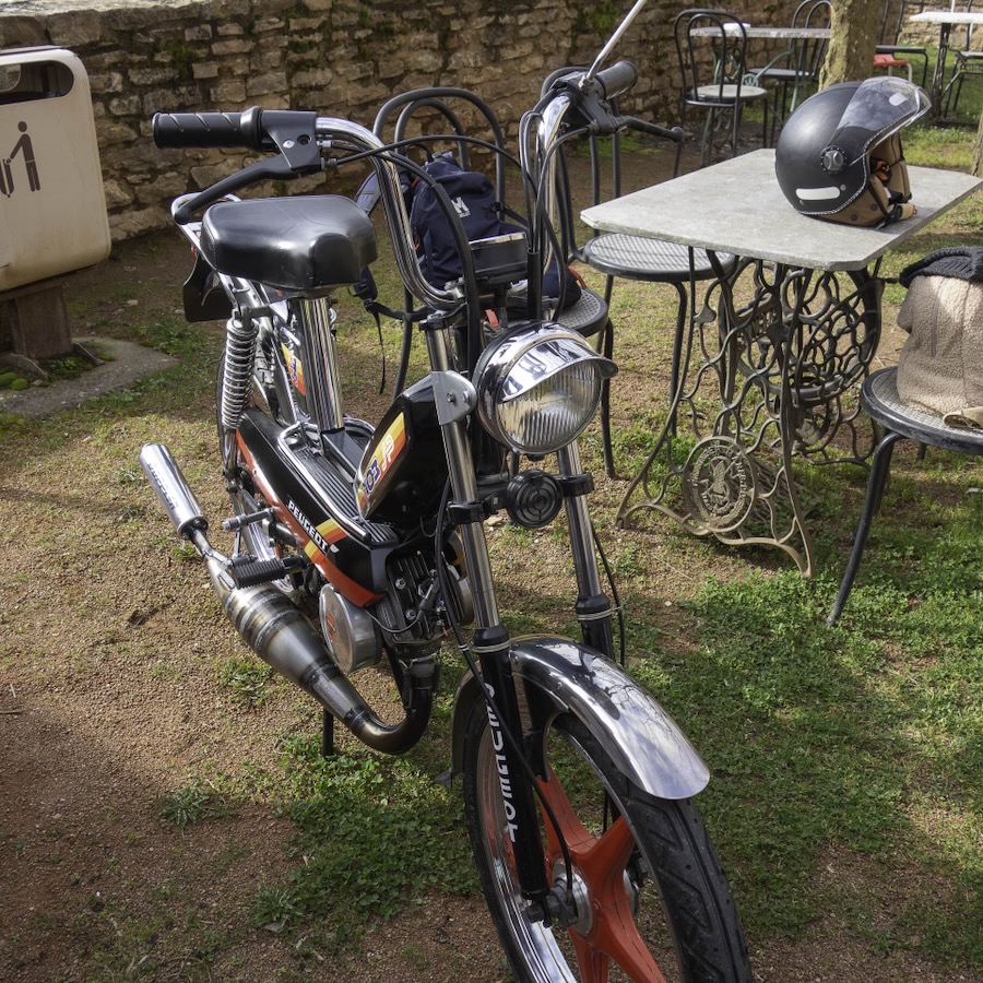 Peu à peu le caveau s’est rempli et, le retour du soleil aidant, la cour, qui se garnissait peu à peu de nouvelles mobylettes, 103, Ciao et autres, est vite devenue très animée.