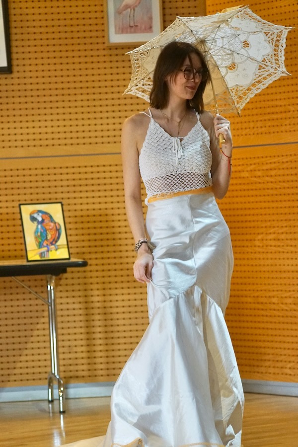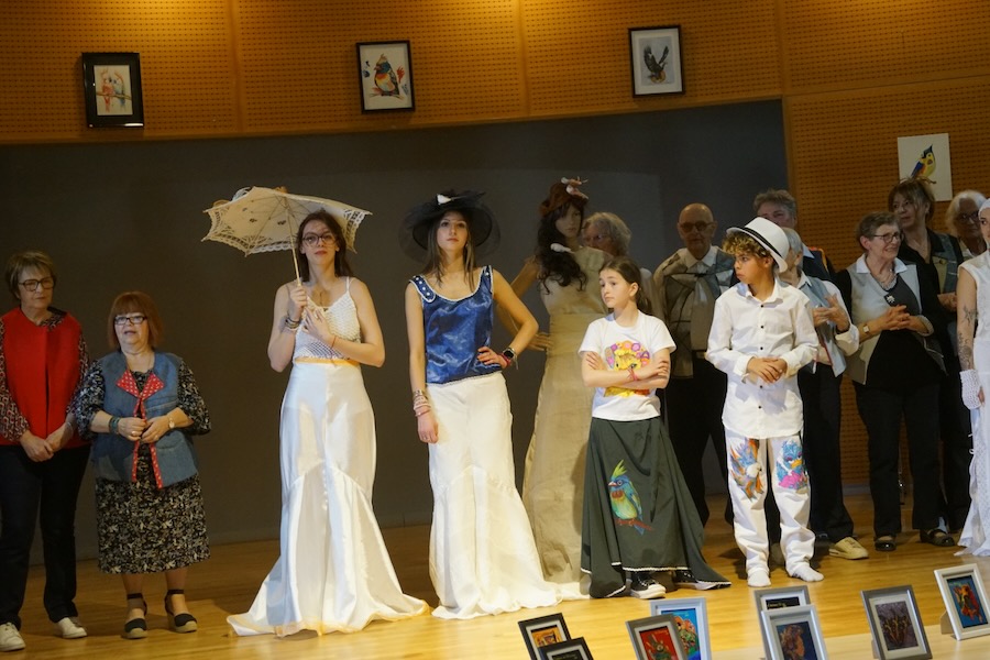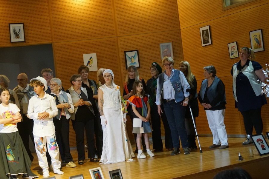 L'Atelier des Champs-Fleurie, présidée par la charismatique présidente Gabie, ex-couturière, a fait son effet sur le public nombreux réuni cet après-midi à la salle des fêtes pour le Printemps des artistes, 9ème du nom. Une édition marquée par un défilé de mode pétillant avec les créations de l'Atelier, à base de récupération. Un défilé sollicitant toutes les générations.