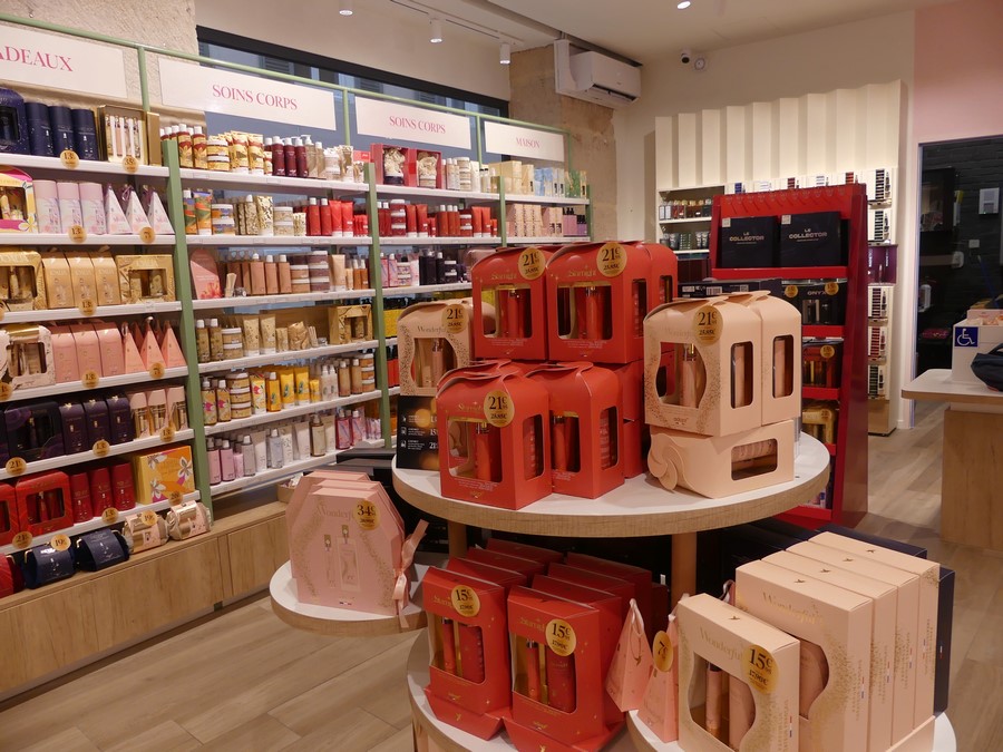 L'enseigne propose, outre tout une gamme de parfums, des cosmétiques, soins du corps, bougies senteurs et plein d'idées cadeaux.