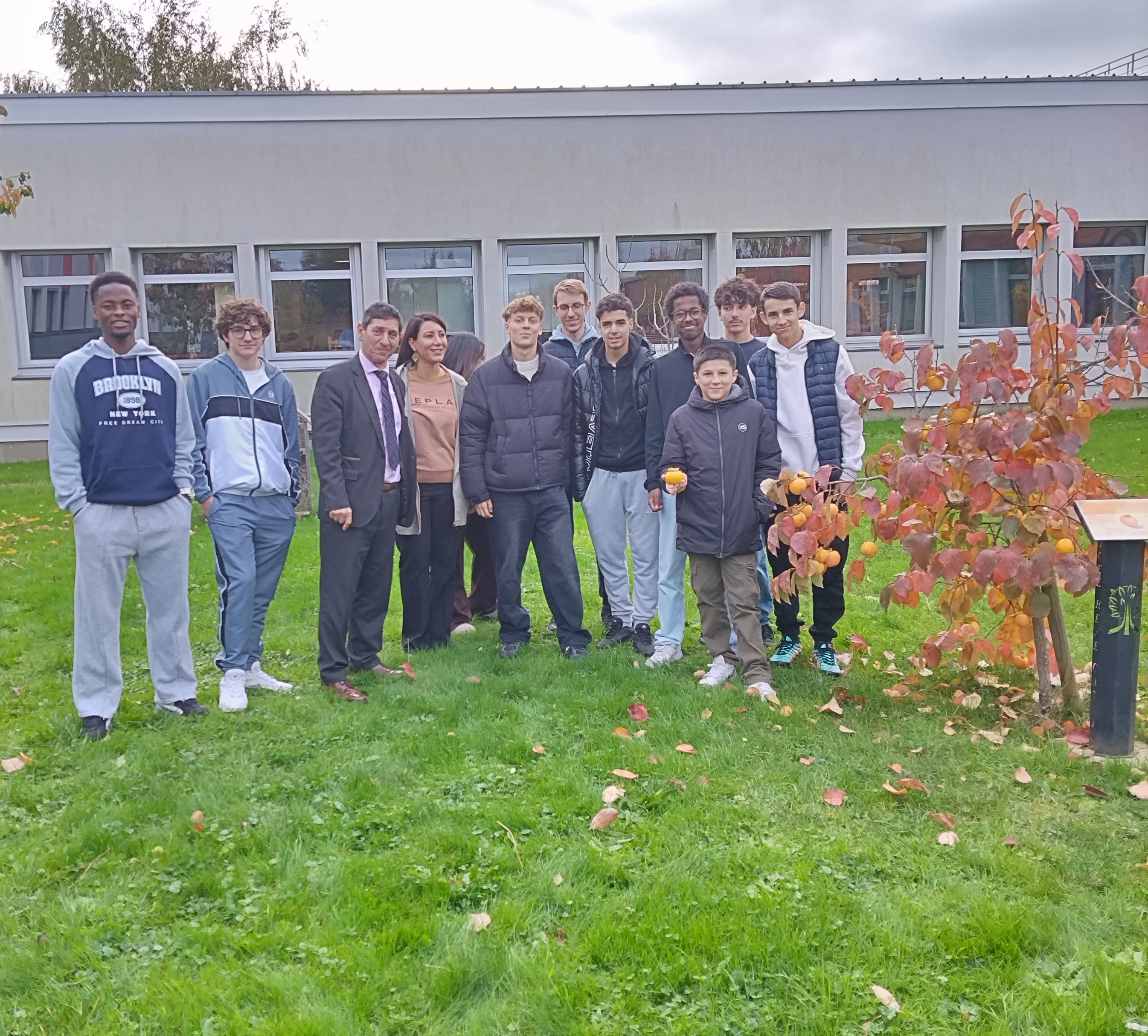 Une quinzaine de jeunes de 1EMU, voie professionnelle du lycée René Cassin, accompagnés des référents éco-citoyenneté, Mme Louhichi Zermani, professeure, et M. San Bernardino, CPE, ont découvert le verger pédagogique de l’établissement dans le cadre de leurs cours. Ils ont pu voir des fruits tels que les kakis et des plantes aromatiques.