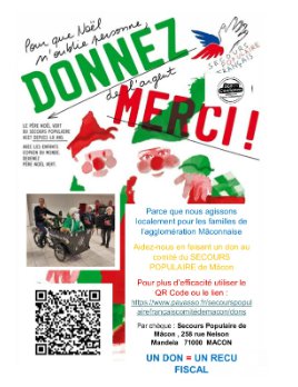 1. Devenez, vous aussi, un père Noël vert en faisant un don en suivant le lien https://www.payasso.fr/secourspopulairefrancaiscomitedemacon/dons ou flashant le QR Code, ce don  permettra à notre comité d’offrir une belle fête de Noël à tous les enfants.