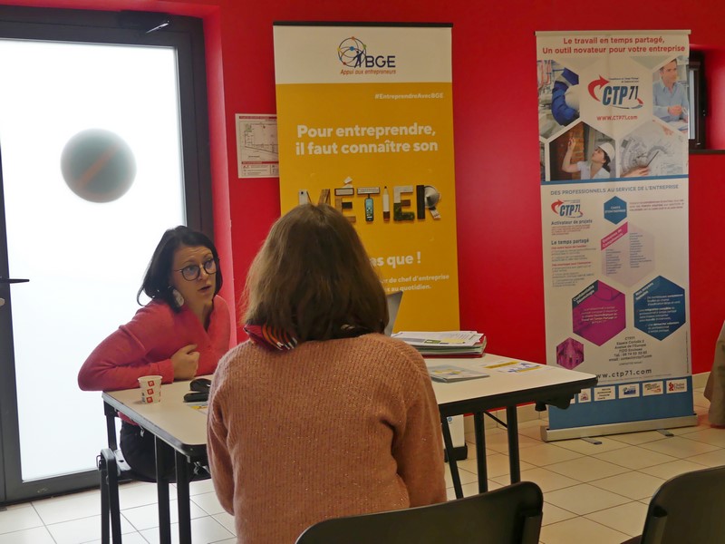 Avec les trois référentes Création d’entreprise de France Travail Mâcon : Sandrine Passot, Muriel Vorillion et Constance Renaud-Ferret, 13 prestataires étaient présents : le Bureau de Gestion des Entreprises (BGE), la Chambre de Commerce et d'Industrie (CCI), l'ADIE (accompagnement à la création d'entreprise, mise en place de dispositif d'aide et mise en relation avec d'autres associations), Tipi, entreprise de portage, AXA Assurance, BR Audit, CAE Bourgogne, la chambre des Métiers, le Crédit Agricole, CTP71, Esprit d'Entreprendre, France Active et Initiative 71.