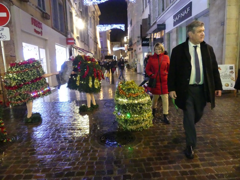 La soirée était animée par une déambulation en centre-ville des musiciens de la « Banda Crescendo » et des sapins de la « Cie Sur le Vif ».