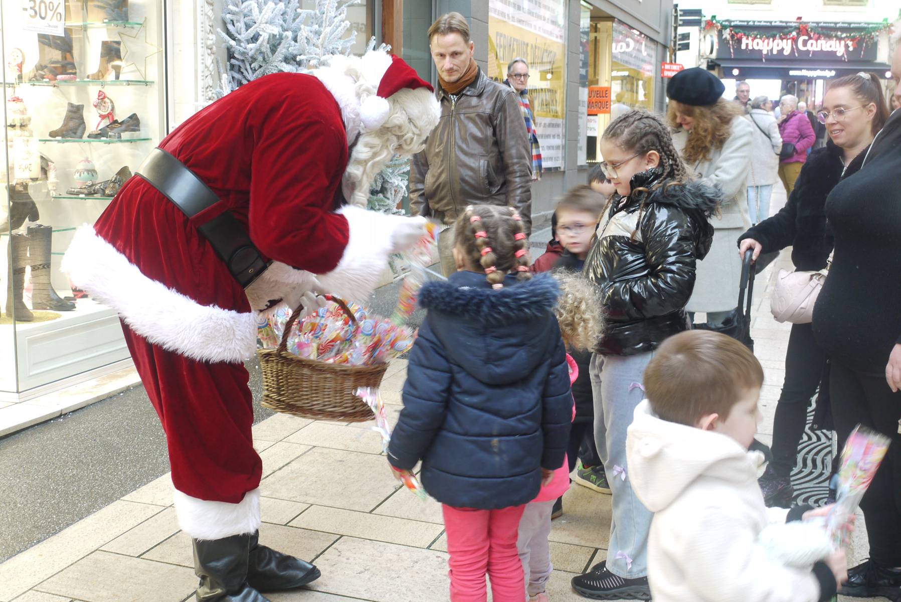 Noël n'allant pas sans douceurs et gourmandises, Happy Candy met à disposition des confiseries que le personnage légendaire distribue aux petits et grands tout au long de son parcours.