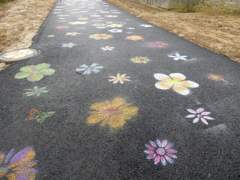 L’école Arc-en-Ciel s’est déjà appropriée cette voie verte puisqu’un projet artistique a été mené avec deux classes de l’école pour y réaliser des dessins.