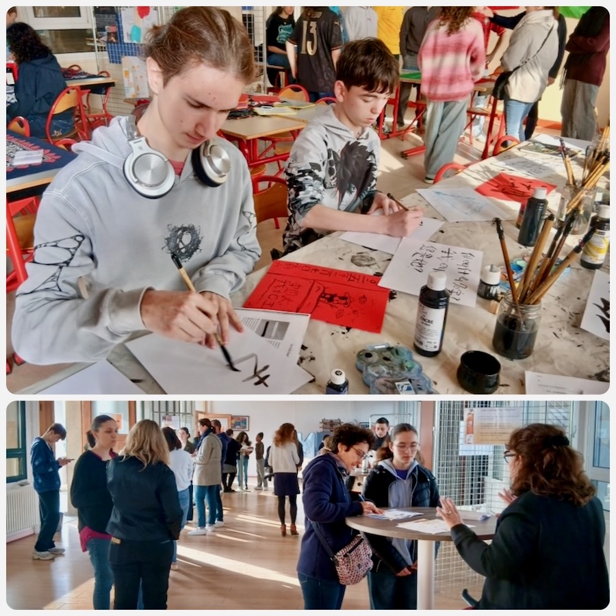 Dès leur arrivée, les parents ont pu interroger les professeurs principaux des classes de seconde, disponibles pour répondre et informer sur les enjeux de cette classe. D’autres enseignants présentaient les projets spécifiques de l’établissement dans les enseignements spécifiques : le chinois pour s’ouvrir à un autre mode de pensée, portugais pour découvrir une langue parlée dans 9 pays, musique pour développer le plaisir de jouer ensemble.