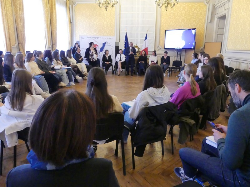 Une mise à l'honneur originale. En effet, c'est au salon Érignac à l'Hôtel de la Préfecture, qu'une soixantaine de lycéennes issues de trois lycées de Mâcon : Cassin, Ozanam et Lamartine étaient invitées à venir échanger avec ces six femmes au parcours d'exception. La matinée était animée par Nathalie Bonnot, déléguée départementale aux droits des femmes et à l'égalité.