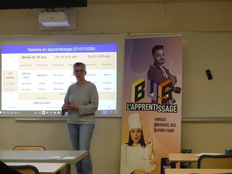 L'intervenante ce matin a apporté aux élèves toutes les informations sur l'apprentissage et présenté les CFA du département.