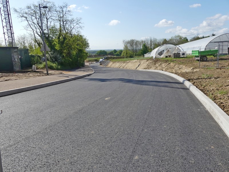 Après une phase de terrassement à l’automne, les travaux de réseaux se sont poursuivis jusqu’en janvier. La voirie a ensuite été réalisée en février avec un aménagement d'une voie mixte piéton – vélo sur l'ensemble du linéaire de 675 mètres. Les plantations viennent d'être finalisées : 17 arbres et des plantations basses dans les noues paysagères.