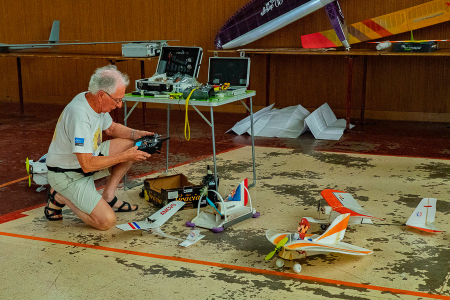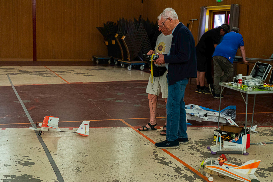 Notre club couvre à peu près toutes les activités de la Fédération, vol radiocommandé, vol circulaire, vol libre. Pour cette dernière catégorie, pas de radiocommande, tout est d’ans l’art du réglage, l’avion est mû au moyen d’un élastique torsionné qui entraîne l’hélice, le but étant de rester le plus longtemps possible en l’air. Nous faisons aussi de la construction, de la maquette. Tout ça représente beaucoup de travail.
