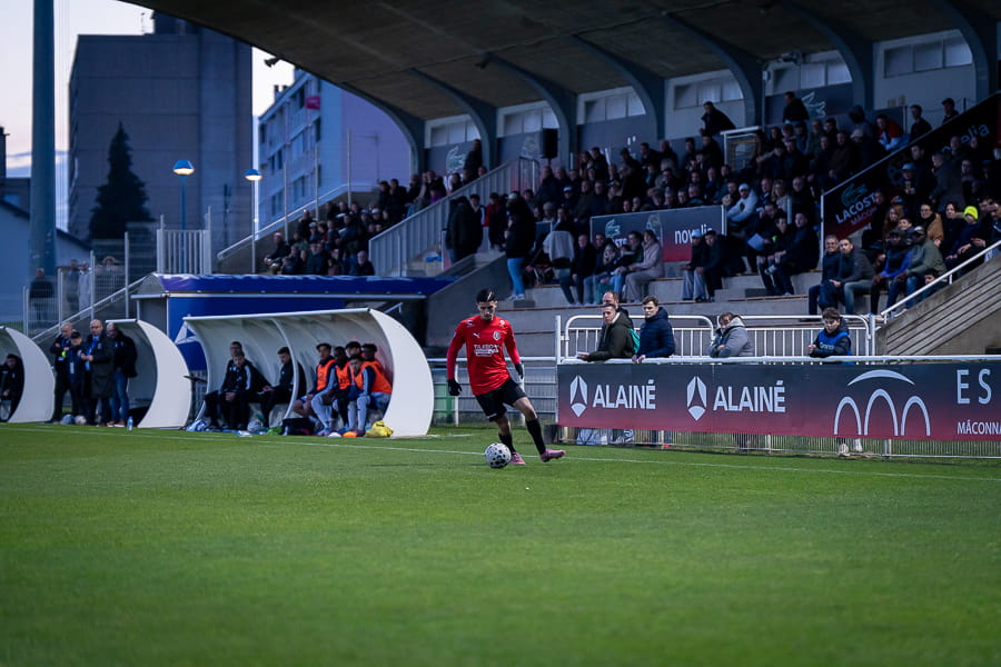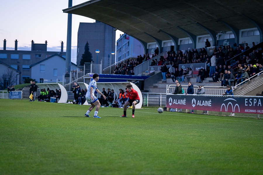 Les mâconnais rentrent bien dans ce match et dominent nettement les 20 premières minutes. Ils ouvrent logiquement le score à la 11ème minute grâce à Adil Hitouss, bien servi par Nolan Herisse, 1-0. Ensuite les débats s’équilibrent à la demi-heure de jeu et plus grand-chose à signaler dans cette première mi-temps.