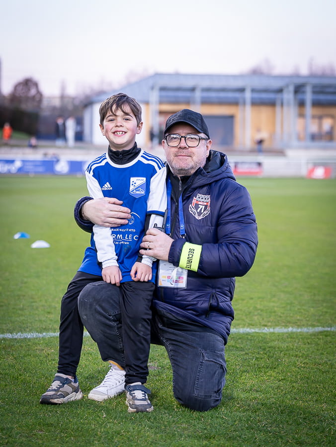 Le parrain du match, Stéphane Guyon, gérant du magasin Hyperburo, donne le coup d’envoi fictif et c’est parti au stade Pierre Guerin !