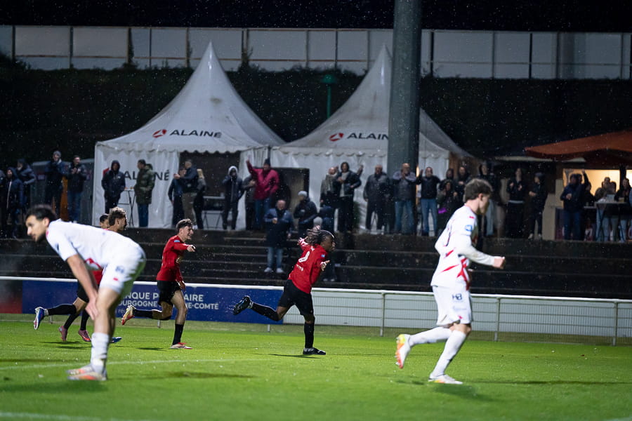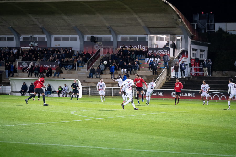 Au retour des vestiaires, les mâconnais font le plus dur en revenant au score grâce à Leo Bouchet (57’) puis en égalisant par l’intermédiaire d’Adil Hitouss (64’) suite à un bon travail de Marjolain Zoumboi qui trouve son coéquipier en retrait. Hélas, joie de courte durée puisque ce diable de Yanis Ammour inscrit un triplé trois minutes plus tard, 2-3 (67’), tout est à refaire. La révolte mâconnaise ne se fait pas attendre, alors que tout le monde pensait le ballon perdu en sortie de but, le capitaine Arnaud Farras, auteur d’un très bon match ce soir, se bat et remet le ballon en jeu d'une chandelle qui atterrit au deuxième poteau, le ballon trouve la tête du buteur Leo Bouchet qui égalise à bout portant, 3-3 (72’). Trois minutes plus tard, Marjolain Zoumboi délivre les siens en inscrivant le 4ème but, synonyme de victoire pour les mâconnais (75’). Malgré quelques situations dangereuses dans le dernier quart d’heure dans leur camps, les hommes de Fred Jay résistent bien et glanent une nouvelle victoire précieuse dans la course à la montée.