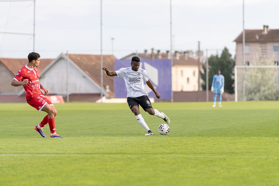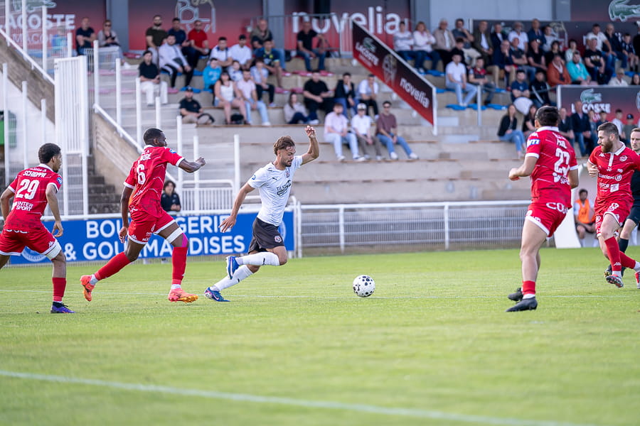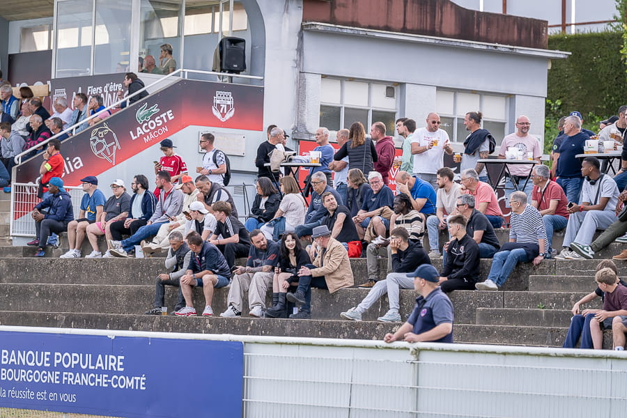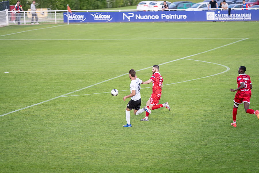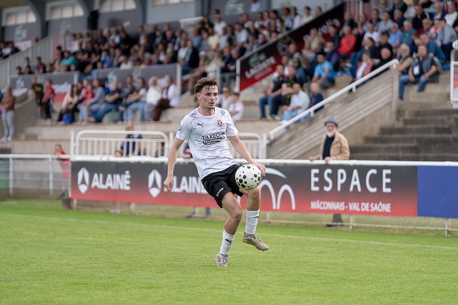 Une première mi-temps terne où les absences de Ndiaye, toujours convalescent, et Taufflieb, victime d’une grosse béquille hier à l’entrainement, se font sentir au milieu de terrain. Pour l’occasion, le capitaine Arnaud Farras est monté d’un cran et joue milieu défensif. Les mâconnais sont en manque de créativité et ne sont pas dangereux, ce sont même les visiteurs du soir qui manquent de peu d'ouvrir le score juste avant la mi-temps avec cette tentative de leur avant-centre Onana qui croise trop sa frappe en duel face à Yirango (43’).