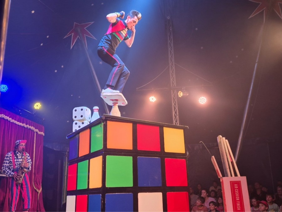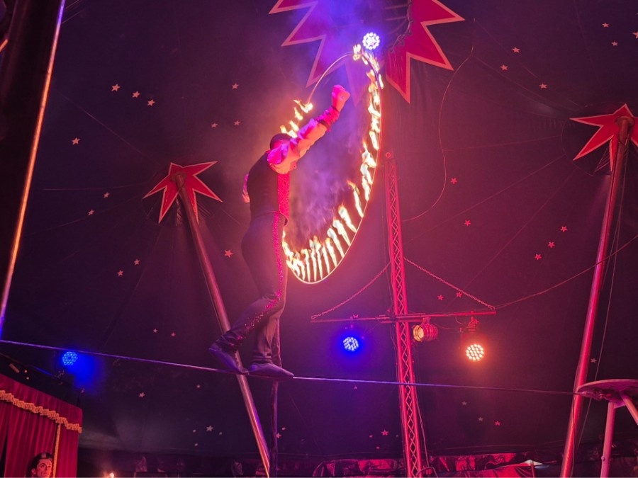 Équilibrisme, jonglage, chaînes aériennes, cerceau aérien, numéros de clown, danse, claquettes, batterie, guitare, breakdance, hip-hop, tir à l’arbalète, funambulisme, fil-de-férisme, jeu d’acteur, magie, monocycle ou encore rola-bola : pendant près de deux heures trente, la piste du cirque de la Compagnie Tempo s’est transformée en un véritable feu d’artifice de disciplines, aussi exigeantes physiquement qu’éblouissantes pour les yeux.