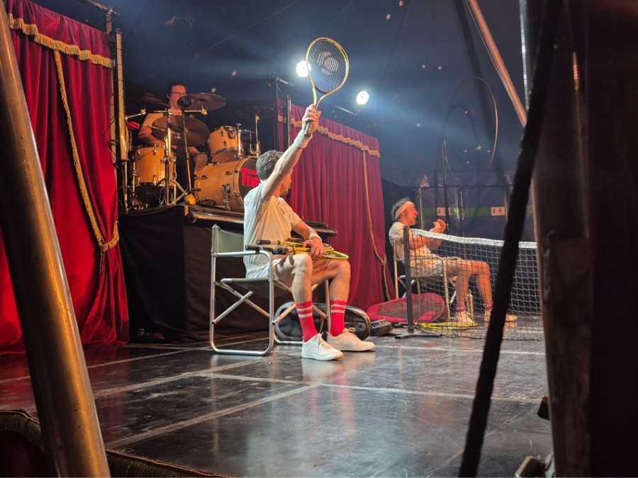 Sous le regard d’enfants émerveillés, les artistes ont repoussé les limites du corps et de l’imaginaire, allant même jusqu’à détourner, avec humour, les codes du tennis dans une improbable chorégraphie de raquettes, entre jonglage et match improvisé. "Rock'n' Roll Circus 2" débarque à Charnay-lès-Mâcon.