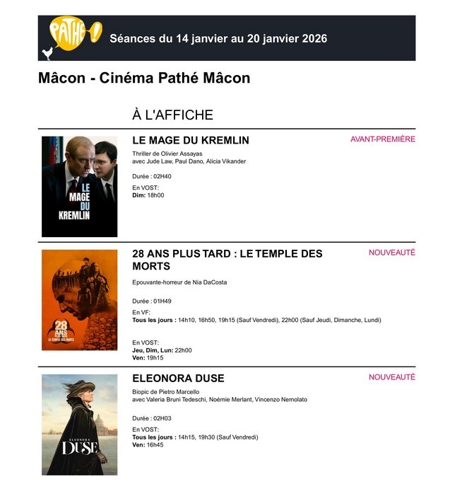 Veuillez trouver ci-joint le programme du 14 janvier au 20 janvier 2026