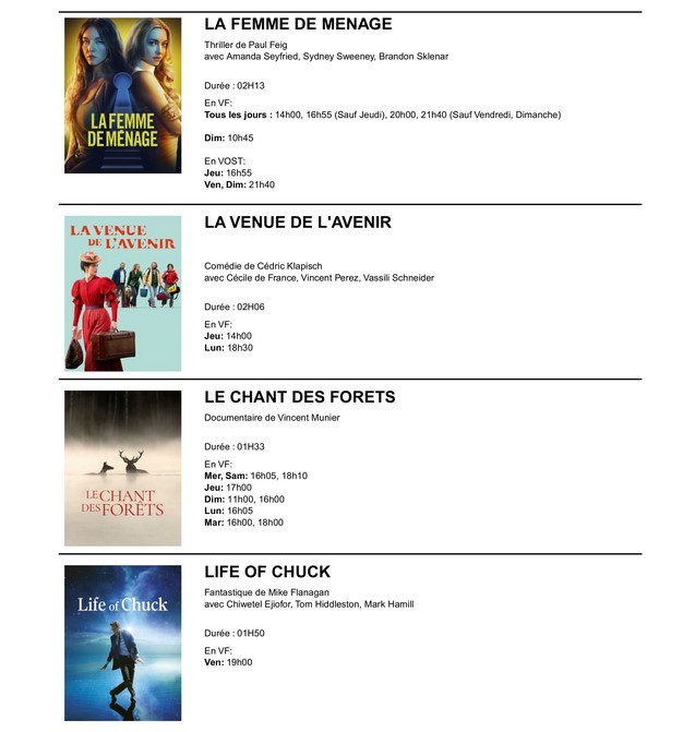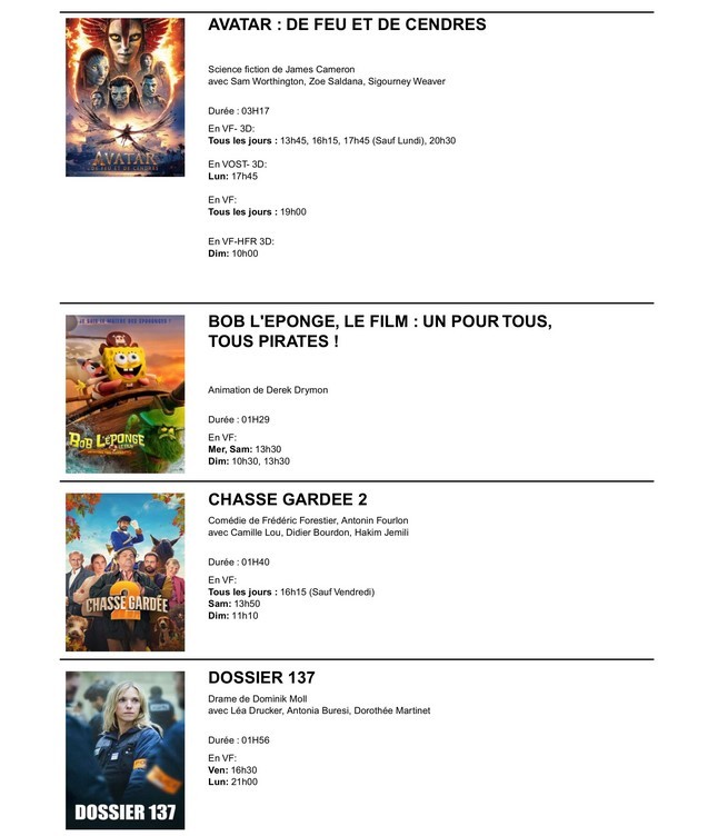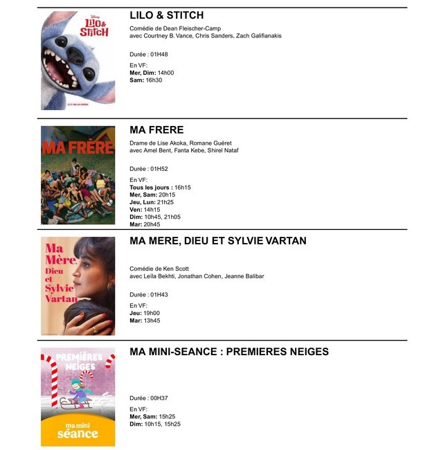 du 14 au 20 janvier 2026 : DRAGONS / ARCO / LILO & STITCH / F1® LE FILM / LIFE OF CHUCK / UNE BATAILLE APRES L'AUTRE / SINNERS / EVANOUIS / 13 JOURS, 13 NUITS / DOSSIER 137 / UN OURS DANS LE JURA / L’ATTACHEMENT / LA VENUE DE L'AVENIR / MA MERE, DIEU ET SYLVIE VARTAN / PARTIR UN JOUR