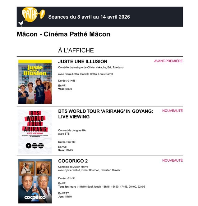 Veuillez trouver ci-joint le programme du 8 avril au 14 avril 2026