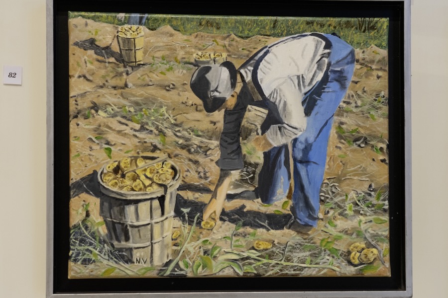 À côté de la scène, un panneau entier est dédié aux peintures réalisées durant la journée de Peintres dans la rue du début de ce mois d’octobre. Œuvres d’autant plus remarquables qu’elles ont été réalisées dans l’espace d’une journée.