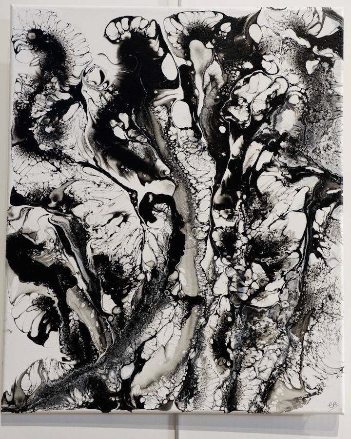 Comme on peut s’y attendre, les artistes n’utilisent pas tous la même technique. Il y a les dessinateurs et les peintres, en couleur ou noir et blanc. Il y a les adeptes de l’acrylique, du pouring, de l’aquarelle sous ses différentes techniques (humide sur sec ou sur humide, sec sur sec) etc.