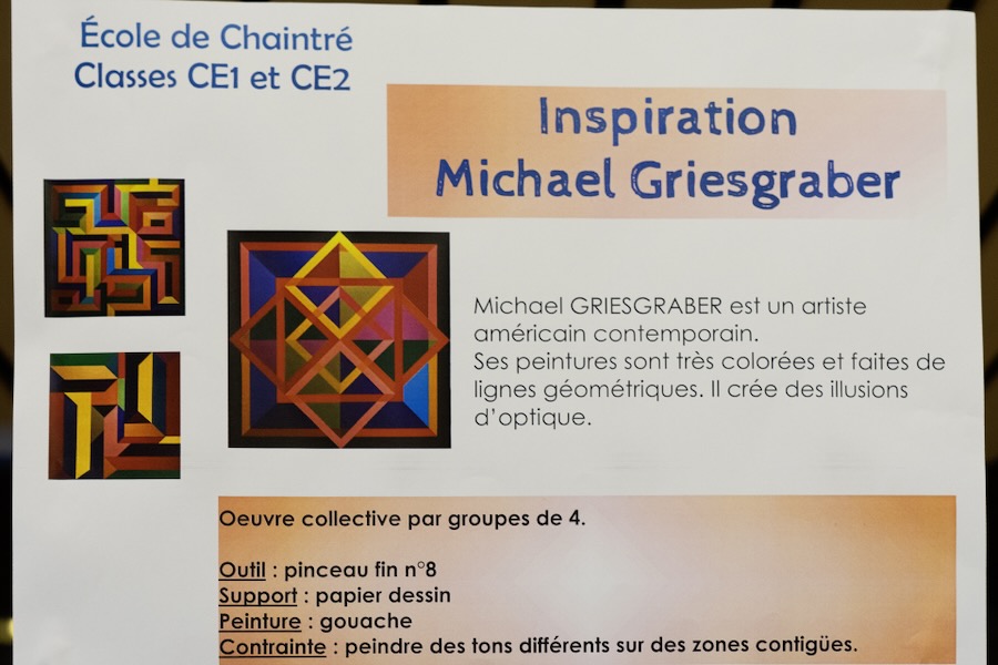 Enfin, invitée par Cantriaca, Mirabelle Rousset-Charensol expose, dans l’espace adjacent à la salle, des sculptures métalliques d’une finesse aérienne remarquable. Et comme chaque année, les enfants de l’école Lucie Aubrac ont participé artistiquement à l’exposition, au travers de peintures contemporaines d’inspiration Michael Griesgraber.