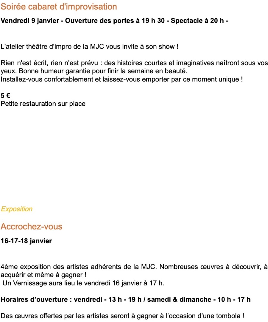 MÂCON : Ce qui vous attend à la MJC de l'Héritan au mois de janvier