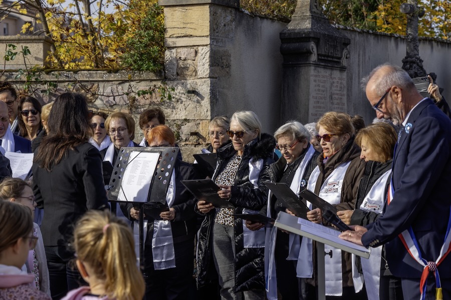 La chorale les Tambronx & Co a alors interprété Le Père la victoire de Lucien Delormel, avant que les enfants du Conseil communal des Jeunes ne fasse lecture du message de mesdames Catherine Vautrin et Alice Rufo, respectivement Ministre et Ministre déléguée des Armées et des Anciens Combattants.
