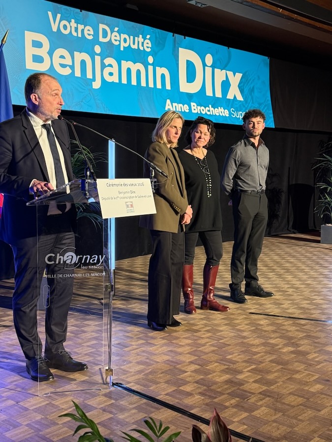 Accompagné de Dominique Dufour, préfet de Saône-et-Loire, et de Christine Robin, maire de Charnay-lès-Mâcon, le garde des Sceaux a traversé la salle comble sous une salve d’applaudissements. Aux côtés de son ami Gérald Darmanin, Benjamin Dirx savourait un pari audacieux pleinement réussi. L’émotion était palpable au moment où le député lançait une soirée qui venait, clairement, de changer d’échelle.