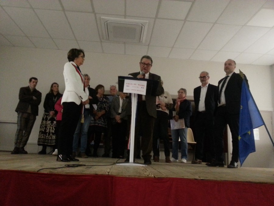 À la salle des fêtes, un public nombreux est venu ce soir assister à la dernière présentation des vœux de la maire de Saint-Amour-Bellevue, Josiane Casbolt. MM. le député Benjamin Dirx (1ère circonscription de Saône-et-Loire), Hervé Carreau (représentant J.-P. Courtois, président de MBA), Jean-François Cognard (conseiller départemental) et le président du SIVOM étaient également présents.