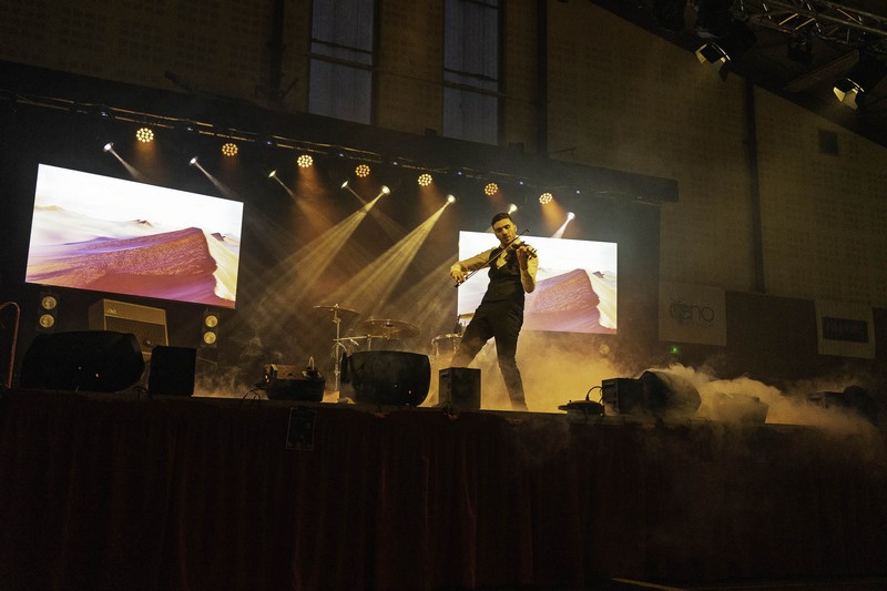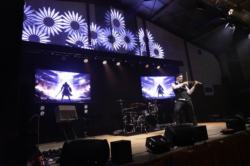 Tout d’abord, c’est Alexandre Medjaher Chomat, jeune violoniste originaire de la Haute Loire, installé désormais en Suisse, qui est monté sur scène. Alexandre se définit comme « un violoniste dansant ».