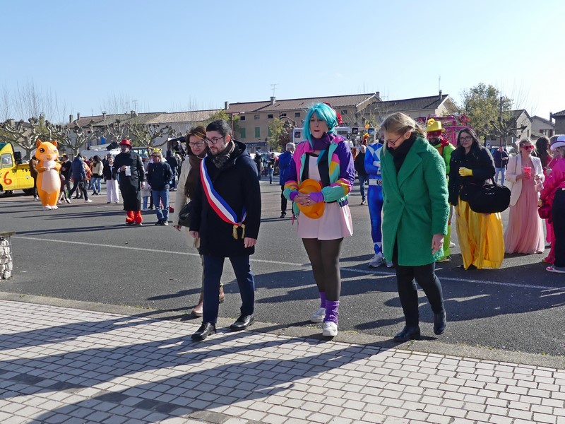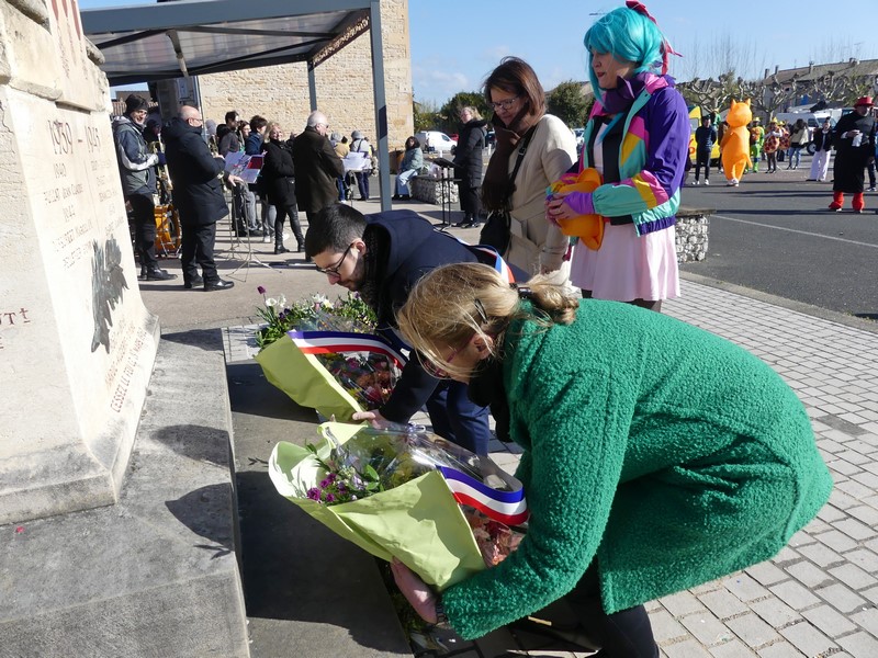 Avant de rejoindre le char Club Dorothée, la présidente de la classe en 6 Audrey Alves Da Costa, a pris part, avec le Maire Valentin Carreras, au dépôt de gerbes devant le Monument aux Morts ce matin. L'harmonie municipale sous la baguette de Betty Berly a interprété la Marseillaise.