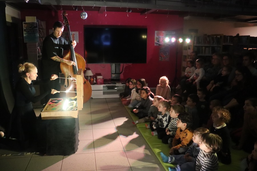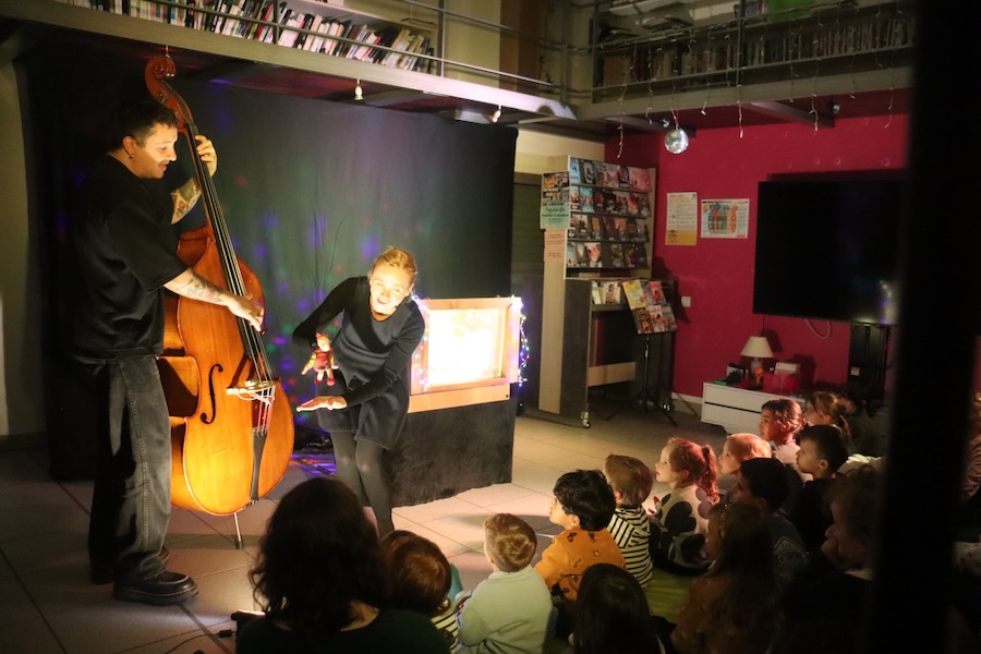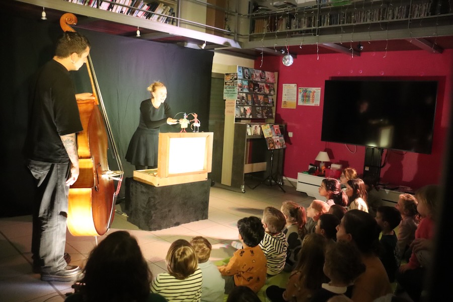 Un spectacle à guichet fermé qui a captivé les enfants, de 6 mois à 6 ans. Ils ont découvert le théâtre d’ombre, la marionnette, la contrebasse et la chanson.