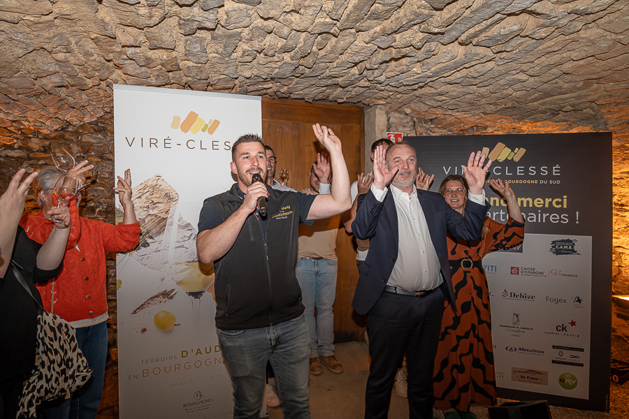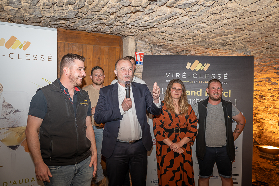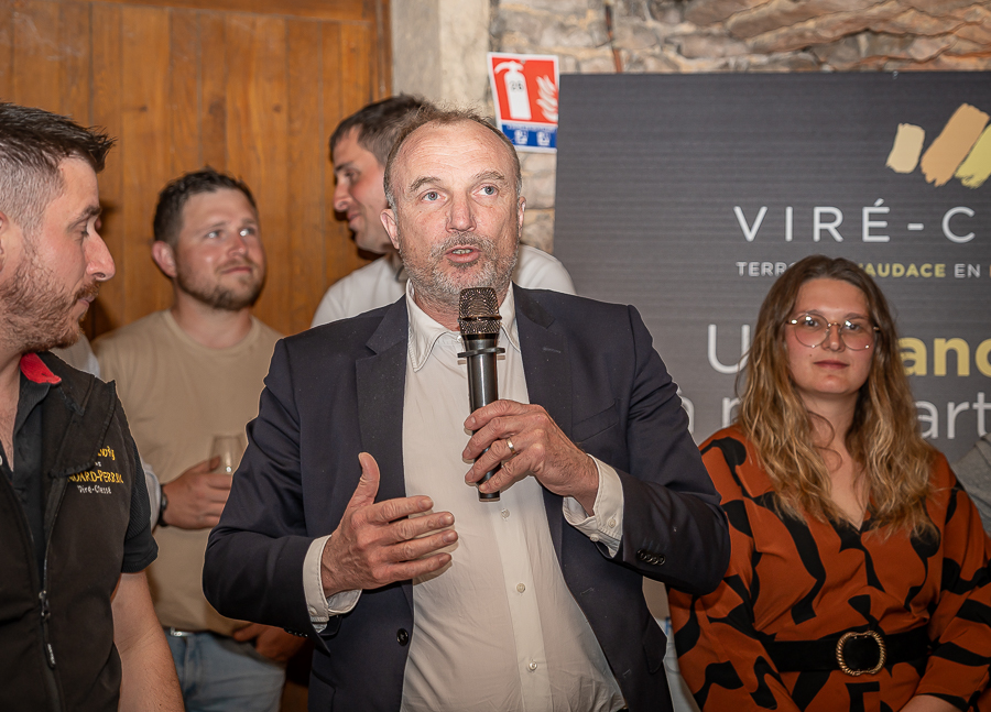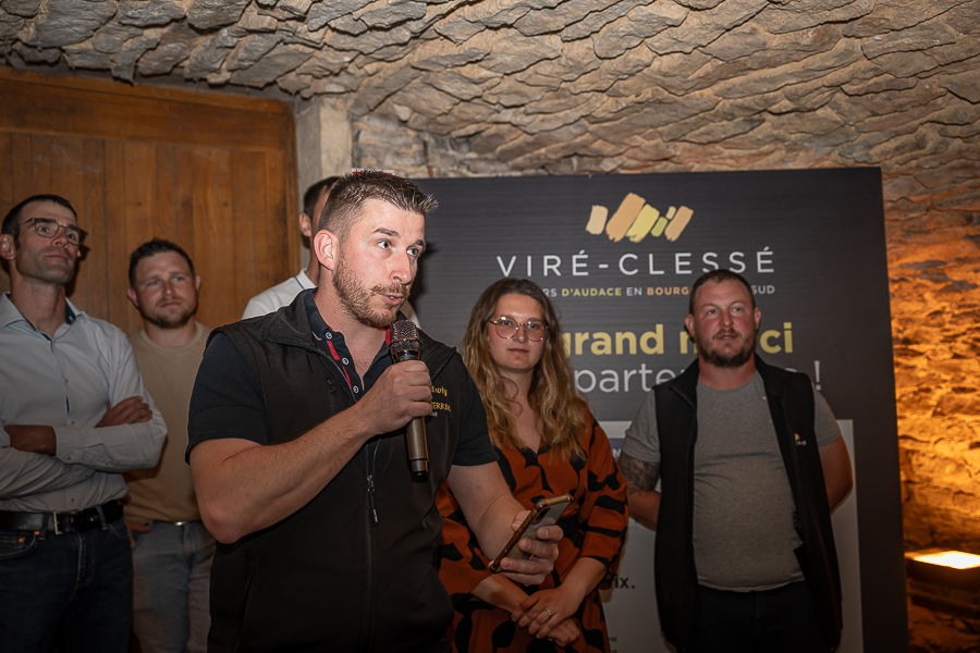 Devant vignerons, élus et partenaires, Franz-Ludwig Gondard, responsable de l’organisation de l’évènement a commencé par « remercier tous les invités qui ont répondu présents ce soir, ainsi que les élus, le député Benjamin Dirx, Patrick Desroches, conseiller départemental et maire de Viré, Denis Kissel, fraichement élu maire de Clessé, Philippe Demousseau, maire de Laizé, messieurs Bruno Galli et Thierry Garnier adjoints au maire de Montbellet. Ce soir toutes les communes, où il y a l’appellation Viré-Clessé, sont présentes, cela fait énormément plaisir ! Monsieur Da Costa de la DRI qui nous accompagne et nous donne des conseils avisés pour toute l’organisation. Je tiens évidemment à remercier tous les membres de la commission du comité d’organisation, tous les bénévoles, Fanny Perrier pour son travail dans l’ombre, Monsieur François Lafay (dit clochette), agent communal de Clessé, les employés communaux de la mairie de Viré et bien sûr vous tous nos partenaires ! »