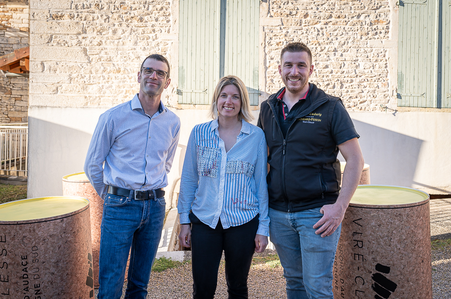 De gauche à droite, Jean-Jacques Féral vigneron (Domaine Montbarbon à Viré) et membre du comité d’organisation, Fanny Perrier, chargée de développement et d’animation de l’appellation Viré-Clessé et Franz-Ludwig Gondard, vigneron (Domaine Gondard-Perrin à Viré) et responsable du comité d’organisation du Printemps Viré-Clessé