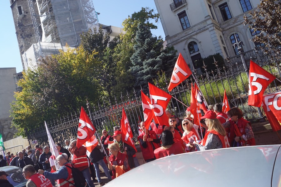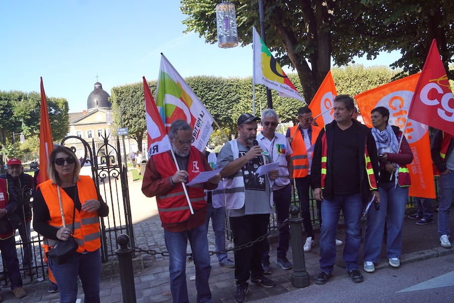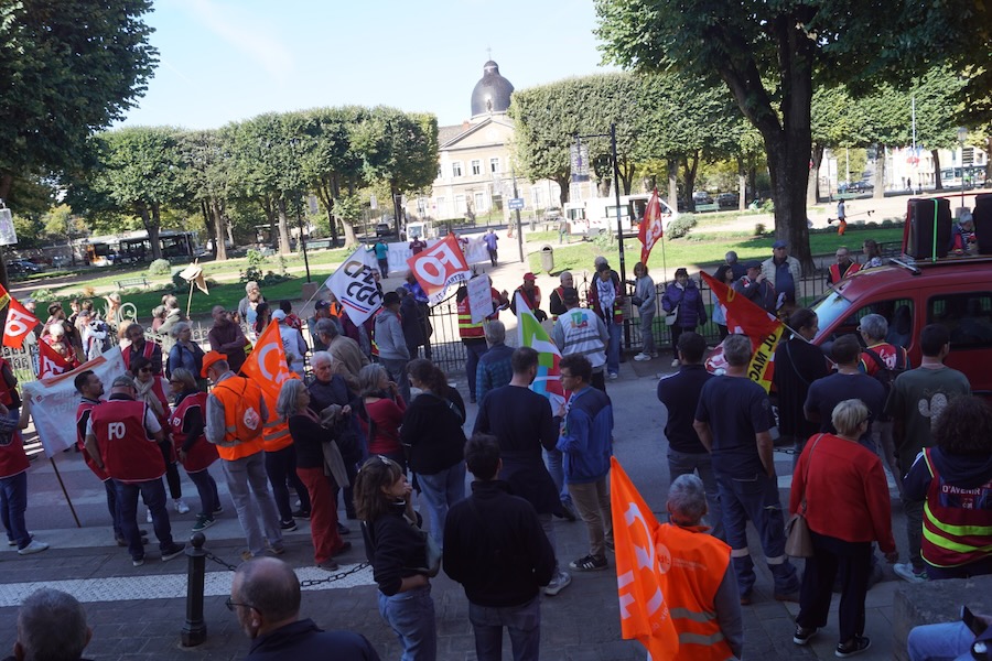 Nouvel appel à la grève ce 2 octobre par les différents syndicats qui ont à nouveau fait une déclaration commune. Les représentants de la CFDT, de la CGT, de FO et de FSU ont prononcé quelques mots devant le square de la Paix vers 14h45 cet après-midi, après être partis de la préfecture, point de rassemblement.