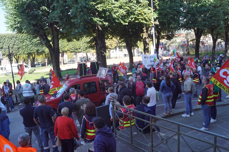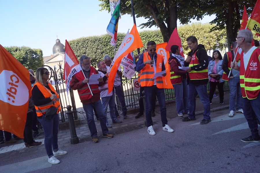 Des mots ont été prononcés par Emilie Quandalle, secrétaire de l'UL CGT Mâcon, en solidarité à un camarade CGTiste, Cédric, participant à la flottille de la paix à Gaza récemment interceptée et détenu par l'armée israélienne.