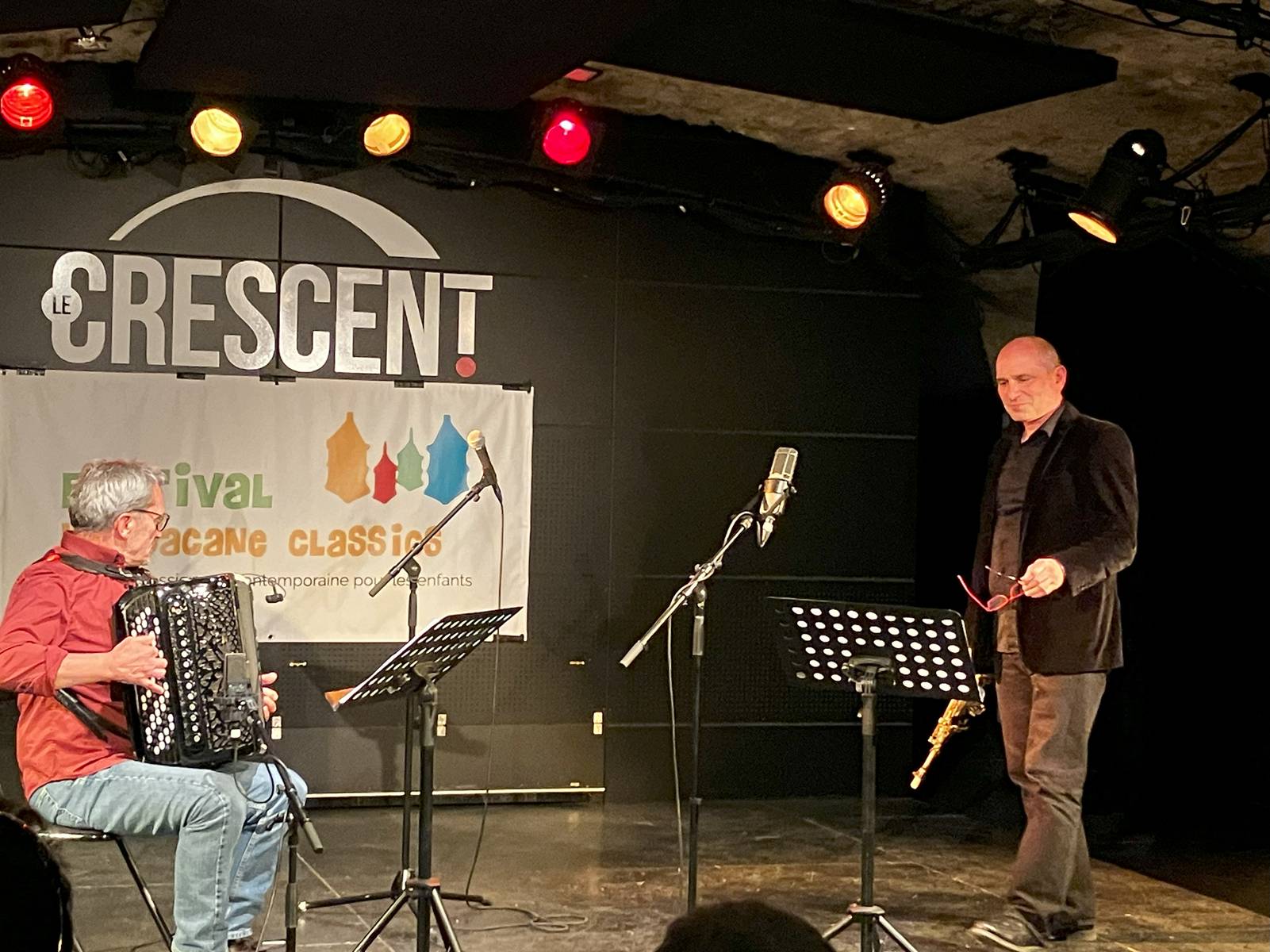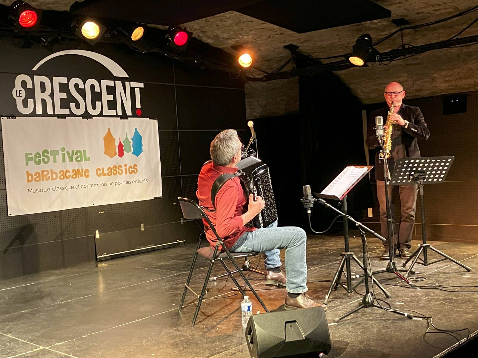Le festival est organisé par l’équipe du Concert Impromptu, originaire d’Ivry sur seine en région parisienne. Existant depuis 2011, il se produit à différent endroits à travers la France. Sur place mercredi au Crescent pour superviser la soirée, Aude Reynoud, la chargée de production et relations presse et Léa Gramusset, la chargée d’administration et des relations. À destination des enfants, le festival Barbacane Classics accueille généralement sur les 3 jours entre 600 et 1000 enfants au total. Pourtant ce soir pour l’occasion il était ouvert à tout public. Si le Concert Impromptu viens depuis 9 ans à Mâcon, c’était leur toute première fois dans ce lieu dédié au jazz. La programmation a tout de suite plu à Aude, qui a déjà vu dans le Crescent un lieu idéal pour se produire. Antoine Barteau, le directeur, est de son côté ravi d’ouvrir grâce au festival le lieu au jeune public. Avec une thématique autour du Brésil, la soirée a été riche en découvertes et en propositions.