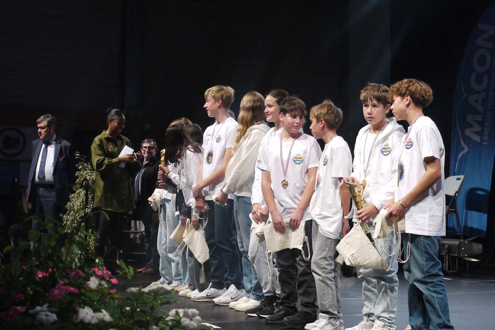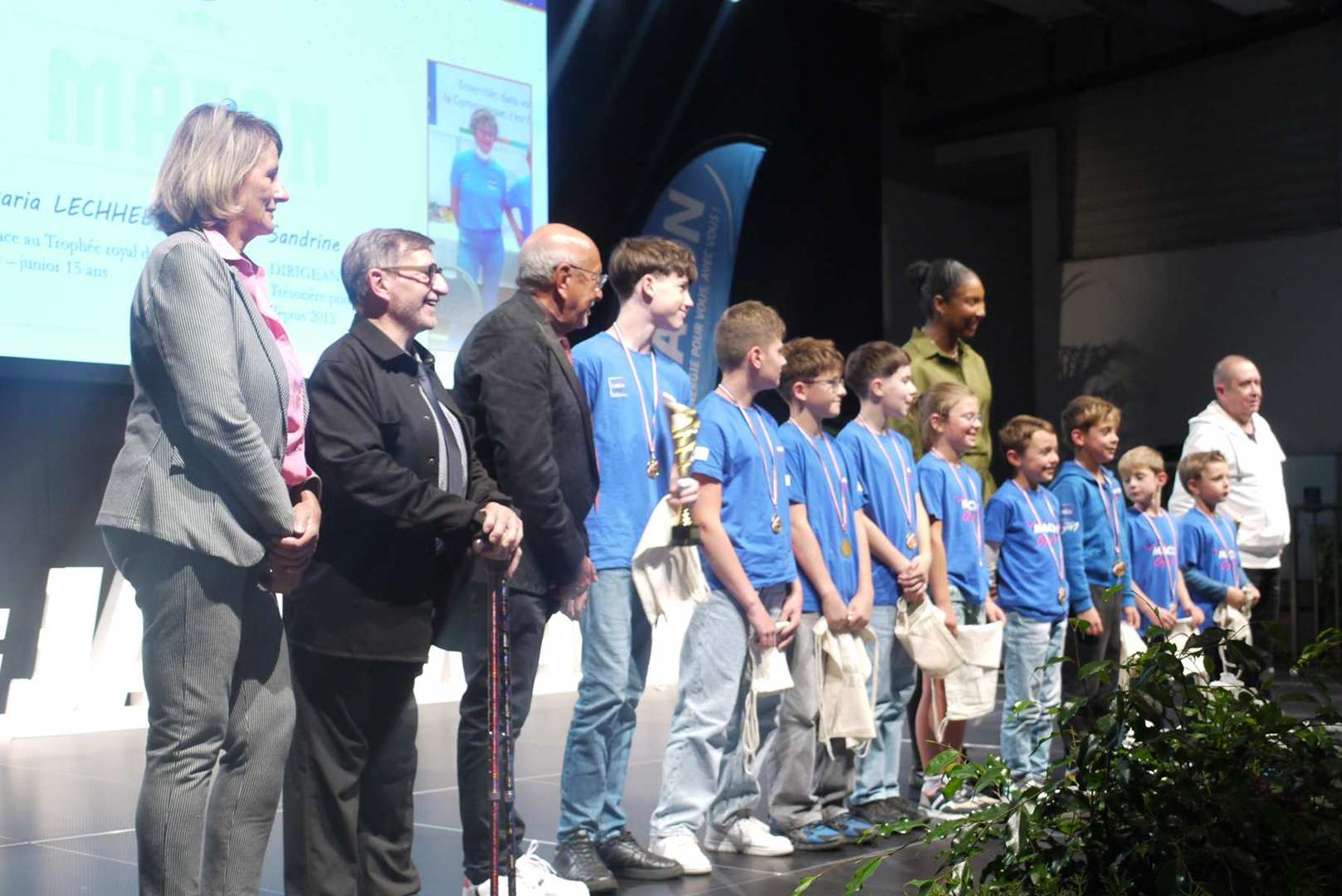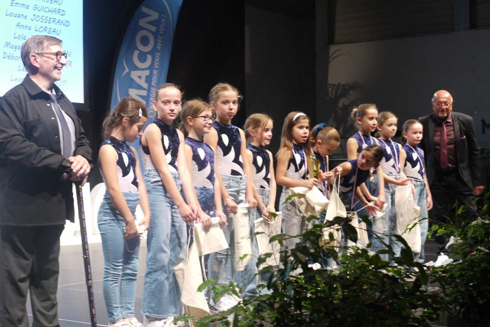 Avant d’entamer la remise des prix, une médaille de la ville est remise à Coraline, après un retour sur ses exploits, marquant ainsi l’honneur de l’avoir invitée pour la cérémonie. Les 22 clubs ou associations sportives ont pu ensuite se succéder sur scène ou leur a été remis médailles et trophées pour récompenser leurs réussites. Sourires et geste de reconnaissances s’enchaînent sur une scène souvent bien remplie par les nombreux sportifs triomphants. Des show de jonglage avec jeux de lumière venaient ponctuer la cérémonie pour le plus grand plaisir du public.